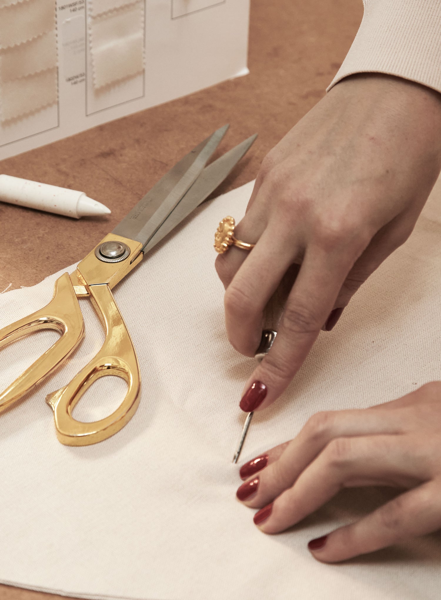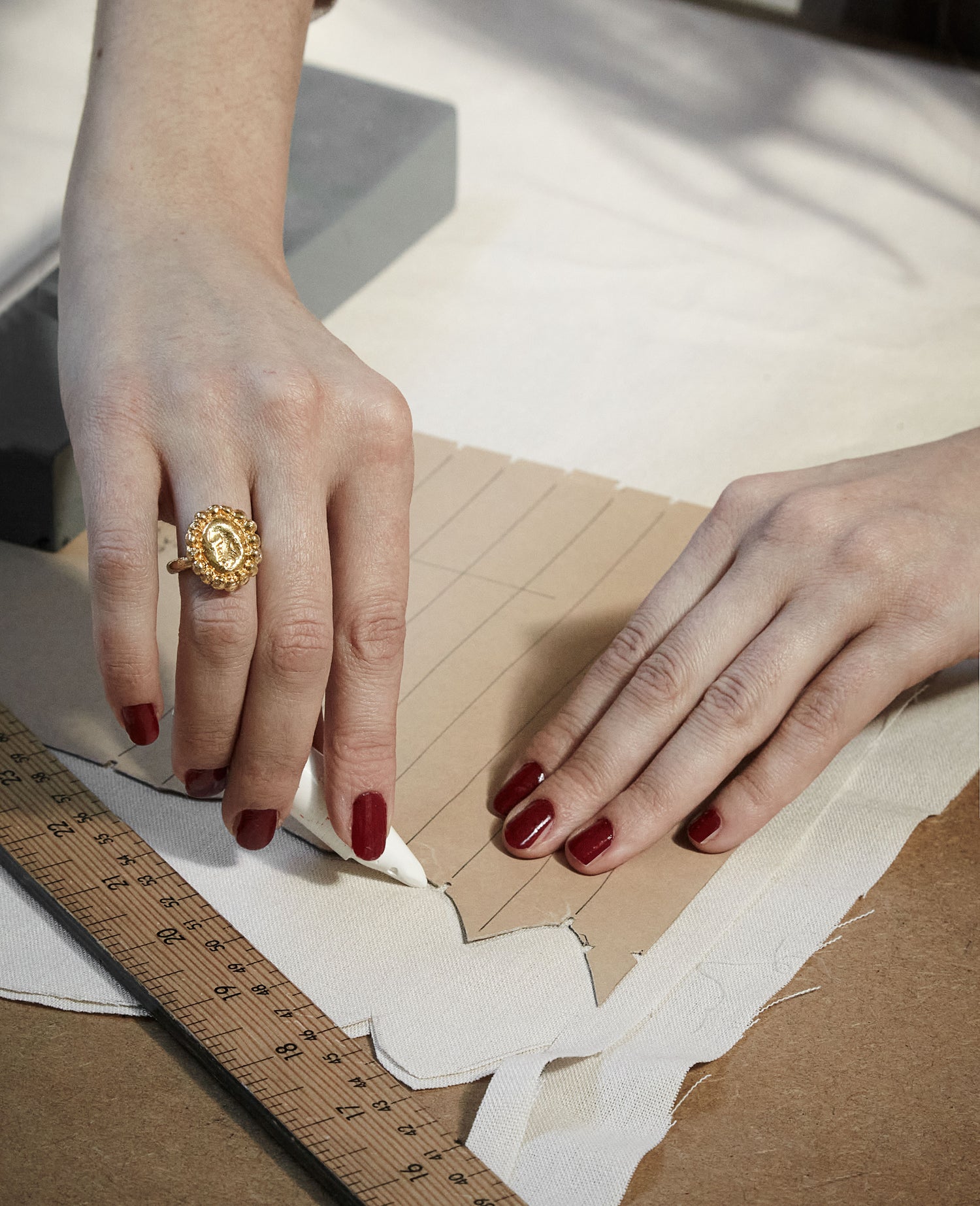 Each garment is meticulously designed and crafted in Sonia's atelier on Stoke Newington's iconic Church Street. Fabrics are carefully selected and sustainably sourced from premium suppliers across England, ensuring every piece in the collection retains a luxury feel. As an independent designer, Sonia applies a slow approach to every step of the making process, with hand-finished techniques and details to give her garments a unique look. This approach means that a minimal quantity of each design comes from the atelier.
