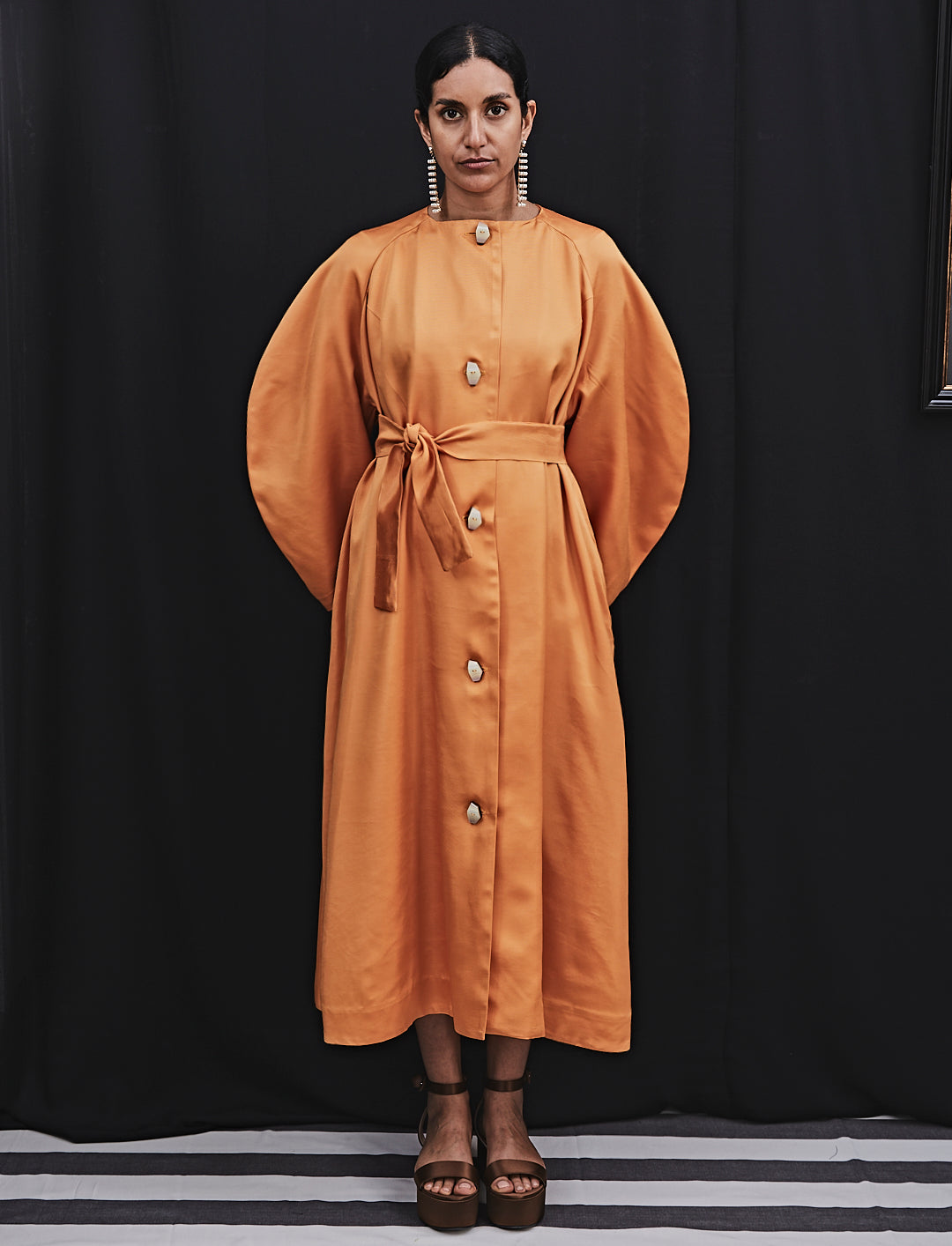 Each garment is meticulously designed and crafted in Sonia's atelier on Stoke Newington's iconic Church Street. Fabrics are carefully selected and sustainably sourced from premium suppliers across England, ensuring every piece in the collection retains a luxury feel. As an independent designer, Sonia applies a slow approach to every step of the making process, with hand-finished techniques and details to give her garments a unique look. This approach means that a minimal quantity of each design comes from the atelier.